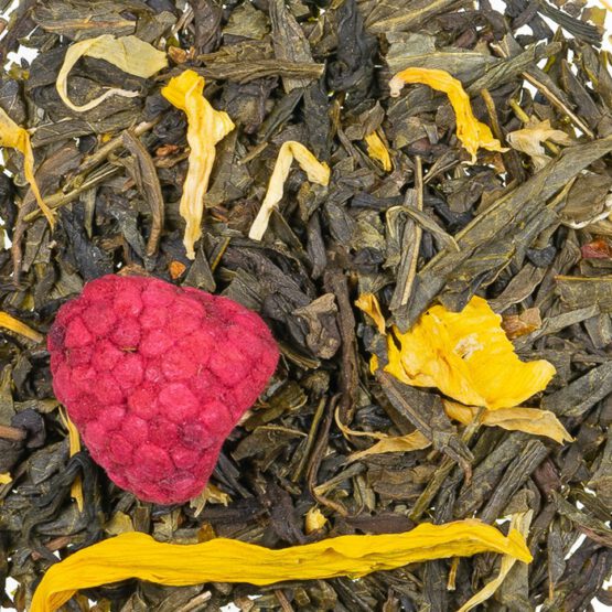 Er bestaan honderden groene theesoorten zoals de fijne groene thee Ming Mee, die ook in de melange zit. Wu Lu is er hier ook een van. Wu Lu is een groene thee met smalle donkergroene bladeren. Door het vochtige klimaat in Jiangxi gebergte geven deze kleine smalle bladeren een unieke zachte kruidige thee met een zoete nasmaak. De delicate kruidigheid zorgt dat de theebladeren mooi aansluiten in een blend zoals de Framboos-Jasmijn. Het maakt de Wu Lu thee populair in zachte smaak melanges. Ook de Lady Star Deluxe maakt bijvoorbeeld gebruik van deze heerlijke groene thee en is net als de Framboos Jasmijn thee een echte aanrader.
