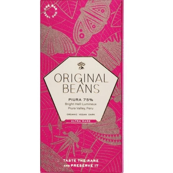 Original Beans is een in Nederland gevestigd chocolademerk met een missie. Zij heeft haar eigen sourcing team dat op zoek gaat naar unieke en oorspronkelijke cacaosoorten. Ze beschermen niet alleen deze cacao maar ook de omgeving waarin zij groeit, het tropisch regenwoud. Met uiterste precisie wordt de receptuur ontwikkelt, zodat de verrukkelijke aroma’s van de cacaobonen optimaal tot uitdrukking komen in hun chocolade. Taste the Rare and Preserve it!