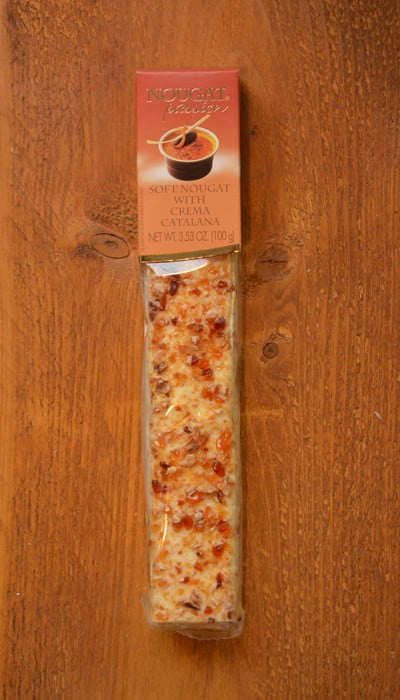 Reep zachte nougat met honing, amandel, hazelnoot, en met crema Catalana