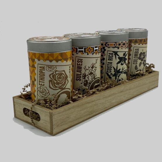 Ga op wereldreis met het Rondje Wereld van De koffie en thee Heer. Met vier waanzinnig lekkere 100% arabica koffieboon soorten proef je de beste koffie, die de wereld te bieden heeft. Verpakt in een fantastische verpakking, ga je als een echte barista op pad naar de ultieme koffieboon.