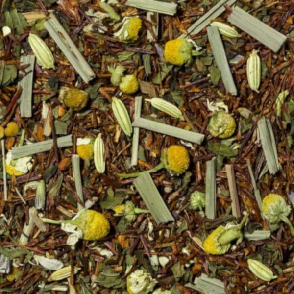 Rooibos, licht en goed uitgebalanceerd met ingrediënten als kamille, venkel en melisse, afgerond met valeriaan en een vleugje lavendelbloesem.