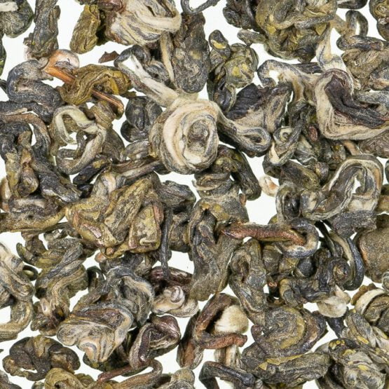Een uitstekende witte thee die tot kleine balletjes is gerold en veel zilveren tips bevat.