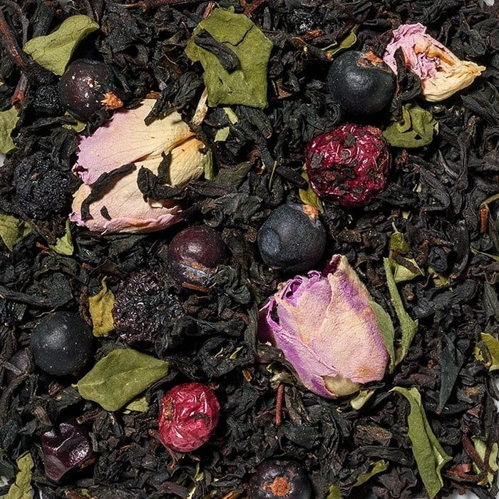 Deze aromatische zwarte theemengeling zal u betoveren met smaken van jeneverbessen en wilde bessen. De volle zwarte thee wordt aangevuld met fruitige tonen en verfijnd met delicate rozenknopjes een magische mix.